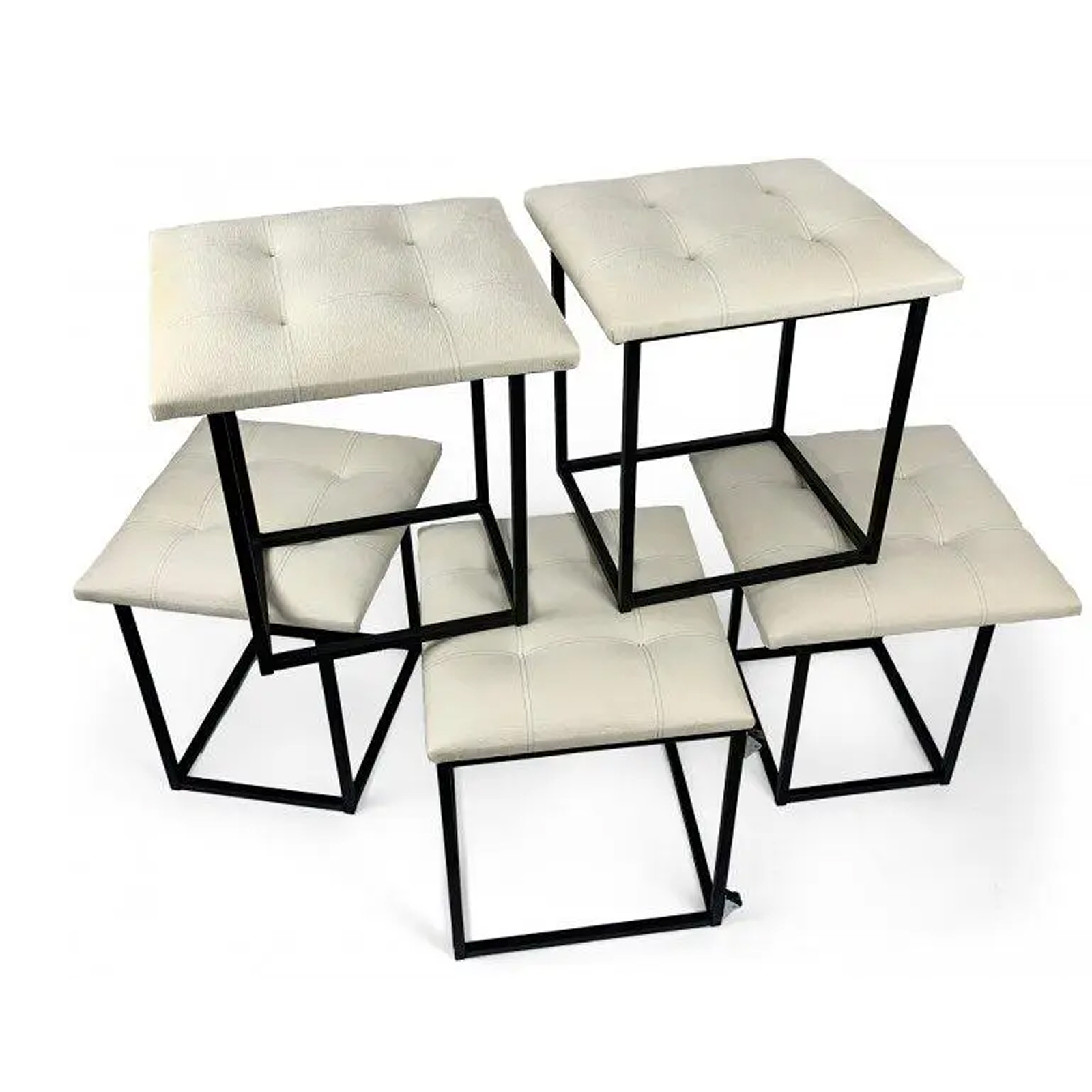 - Пуф трансформируется в 5 отдельных табуретов, каждый из которых выдерживает нагрузку до 200 кг.