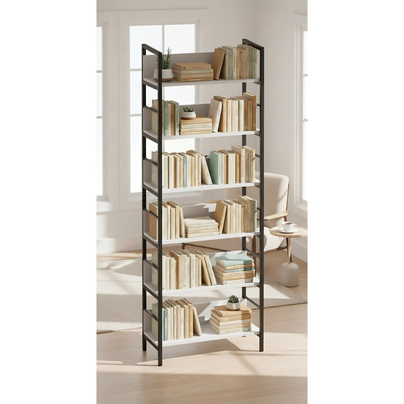 - Стеллаж оснащен шестью открытыми полками. Высота между полками – 350 мм.