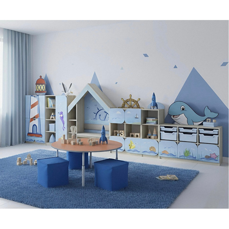 - Вратичките на шкафа са с нестандартна форма, със специален отвор за отваряне, и са декорирани с водоустойчива фотопечат с морски мотиви.
