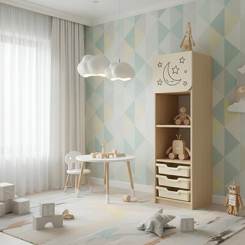 - Вратите на шкафовете са декорирани с фотопринт, покрит с акрилен лак на водна основа, нетоксичен, за повишена устойчивост срещу външни повреди и влажно почистване.