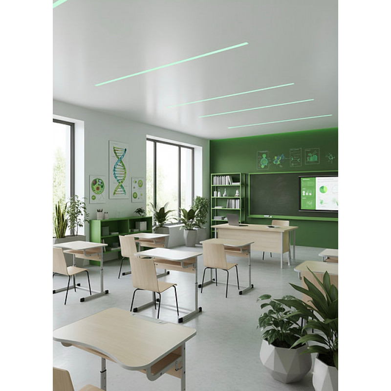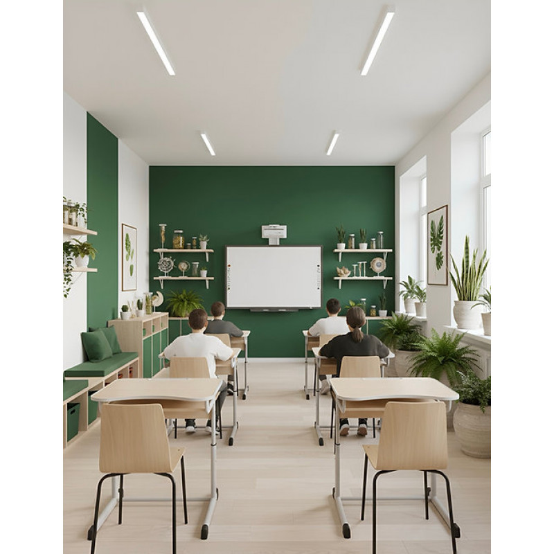 - Плотът със заоблени ъгли е снабден с пенал за канцеларски принадлежности и със специален изрез от страната на ученика, който подпомага правилната стойка по време на обучение.