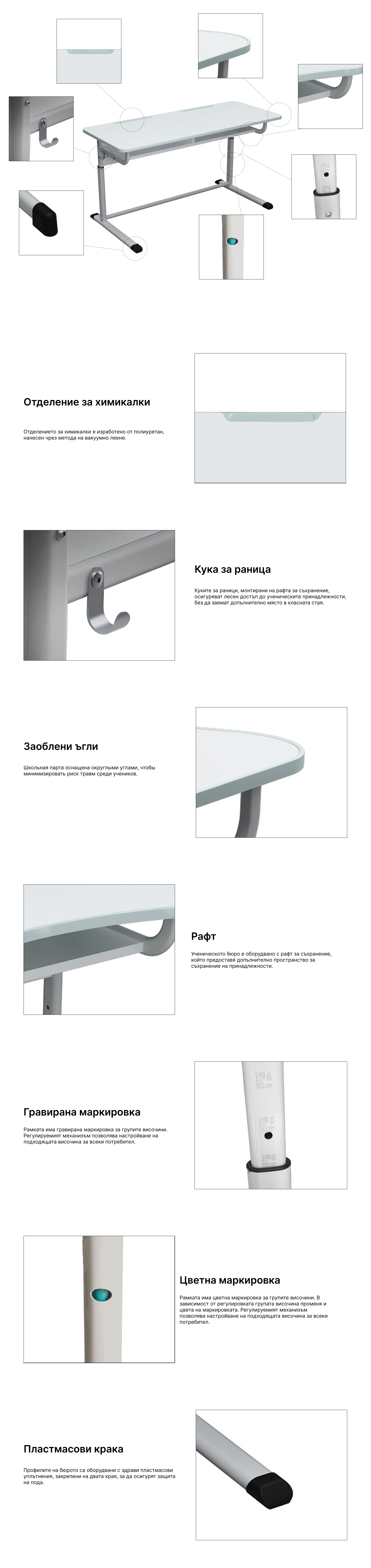 Тип ученически чин:Двуместна, регулируем по височина.
