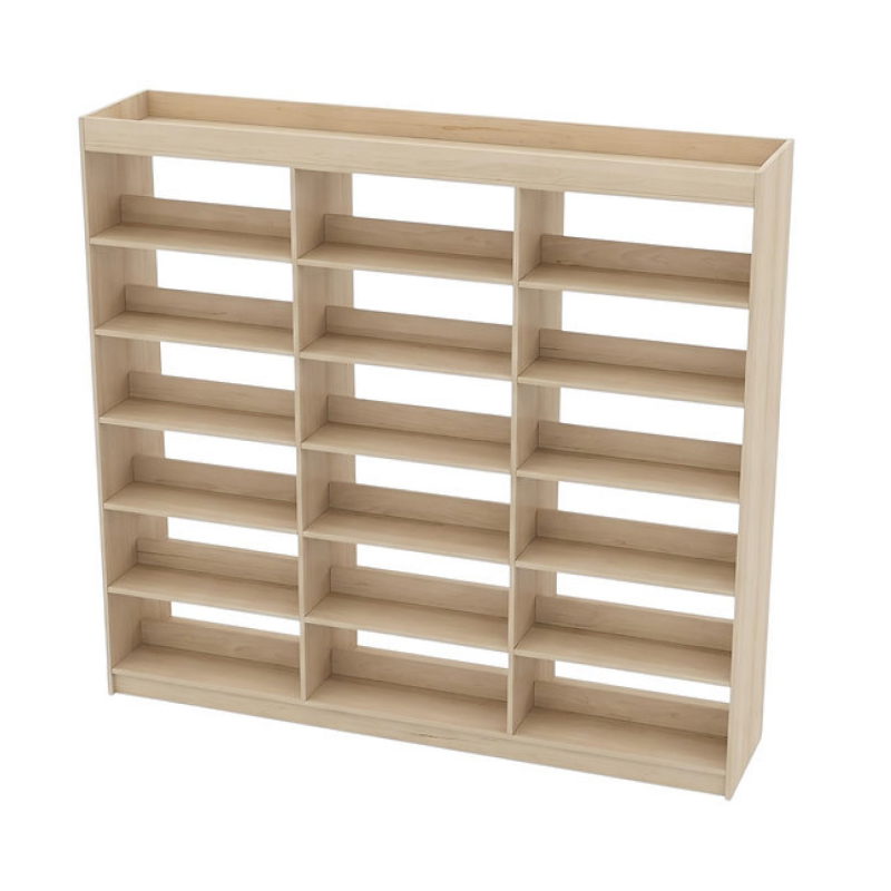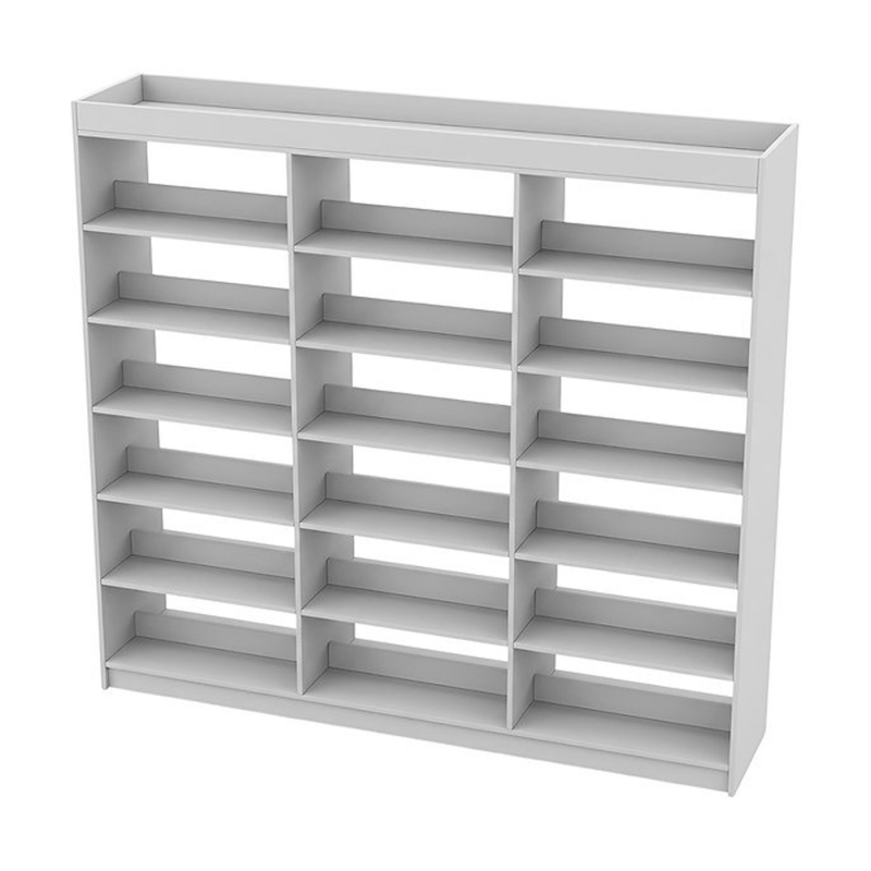 - Етажерката е оборудвана с 18 открити двустранни рафта.