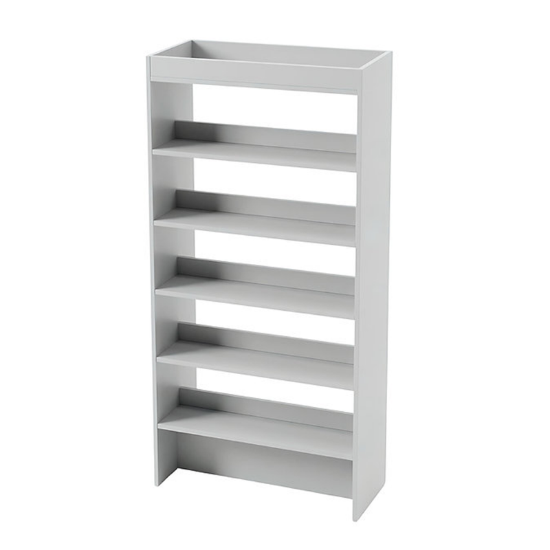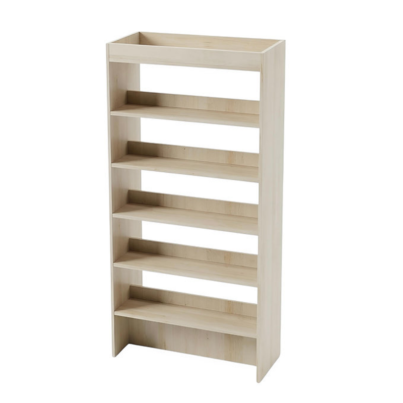 - Етажерката е оборудвана с 5 открити двустранни рафта.