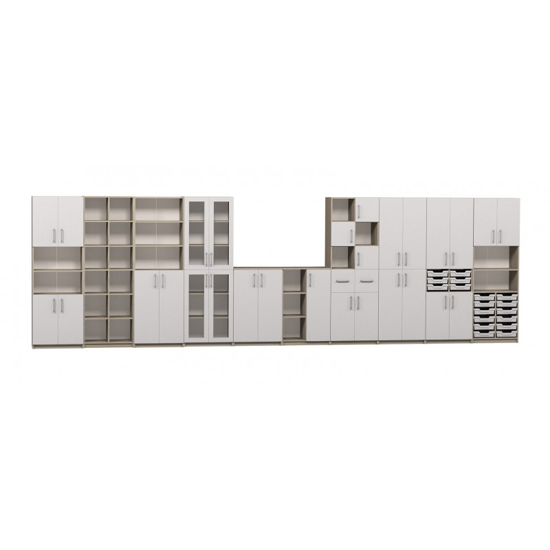 - 1 - Dulap semi-închis cu patru uși și două rafturi deschise. Dulapul are 4 rafturi închise și 2 rafturi deschise. Este prevăzută reglarea înălțimii unor rafturi.