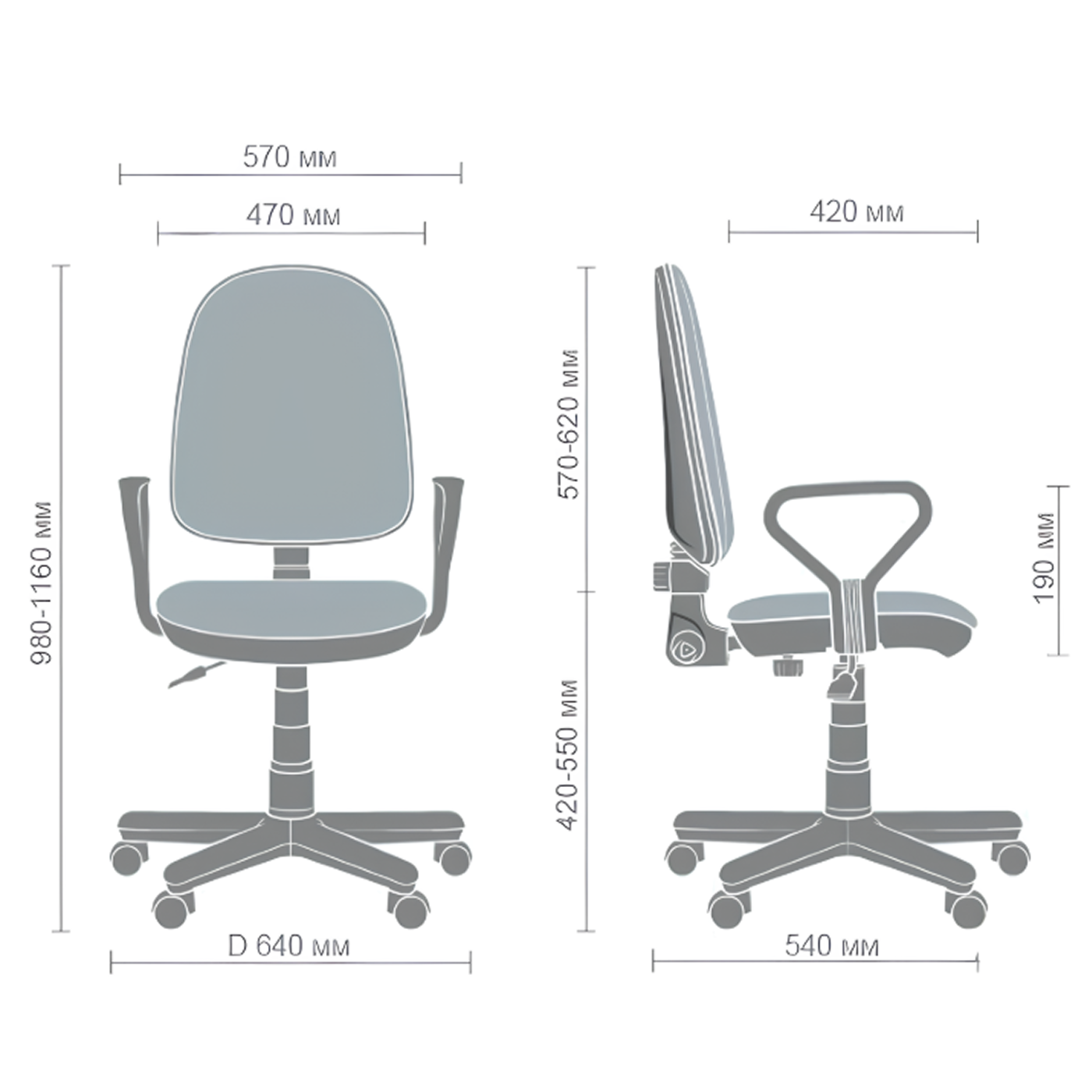 - Înălțime reglabilă a șezutului: 420–550 mm.