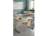 Просторный класс оборудован удобными разноцветными стульями и прочными столами, которые легко перемещать и комбинировать для различных форм работы.