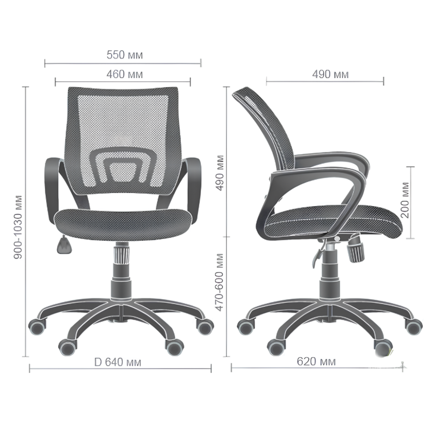 - Размери на седалката: 460×490 мм, ширина на облегалката – 460 мм.